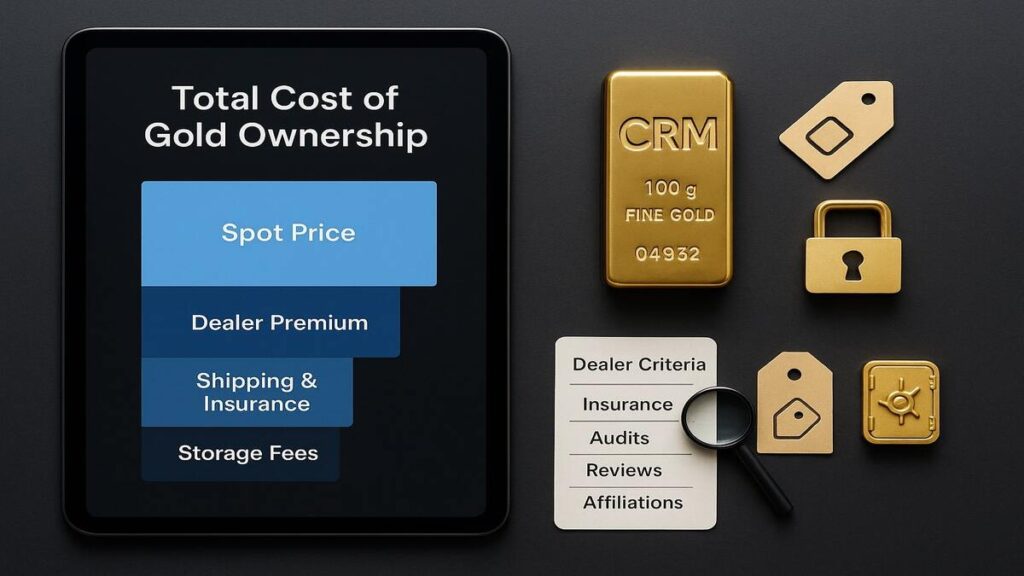 - Vault Storage (CRM Partner Vaults): From $150/year per 1kg bar, fully insured.